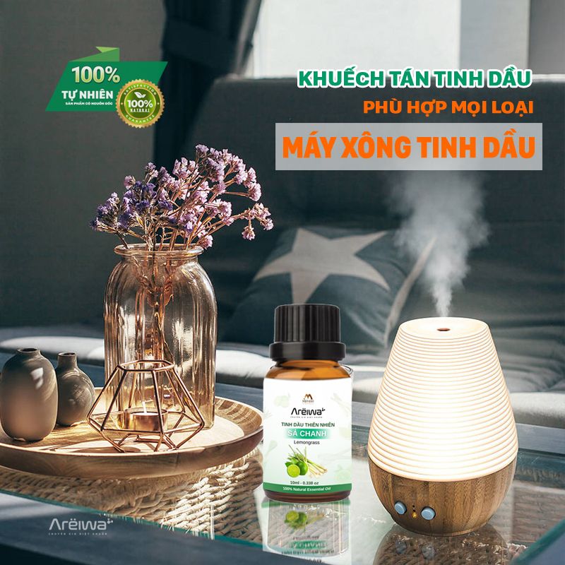 Tinh dầu Thiên nhiên Areiwa được chiết xuất 100% từ thiên nhiên, không hoá chất, không hương liệu. Chỉ vài giọt tinh dầu thiên nhiên sẽ lan tỏa hương thơm, thanh lọc không khí, đem đến sự thư giãn, sảng khoái. Sử dụng tinh dầu có thể giúp bạn giảm căng thẳng, cải thiện tâm trạng và xoa dịu cơ thể.